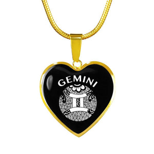 Gemini have a heart of gold and now you can show it with this beautiful heart shaped pendant! This necklace features a unique and eye catching circle pattern with the Gemini sign in white that pops against a sleek black background.