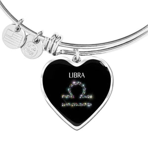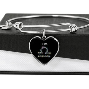 The Libra Stars Heart Bangle is a stunning bracelet detailed with a starry Libra symbol surrounded by gold or silver color setting.The Heart Bangle Is the Perfect Keepsake for Yourself or a Loved One!