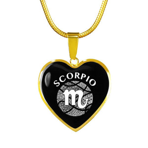 Scorpios have a heart of gold and now you can show it with this beautiful heart shaped pendant! This necklace features a unique and eye catching circle pattern with the Scorpio sign in white that pops against a sleek black background.