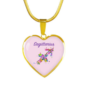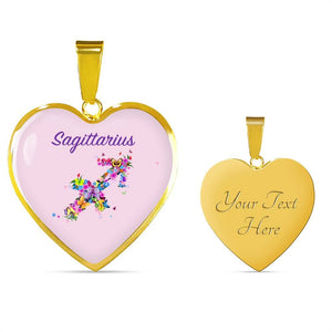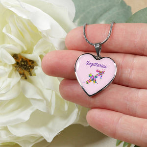 This delightful heart shaped pendant necklace shows just how generous the Sagittarius heart is! This necklace features the Sagittarius sign in flowers and Sagittarius written in a delicate script.