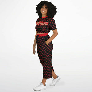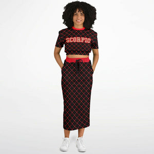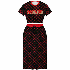 Let ‘em know a Scorpio is in the house with this cute g-style red crop shirt & skirt outfit.